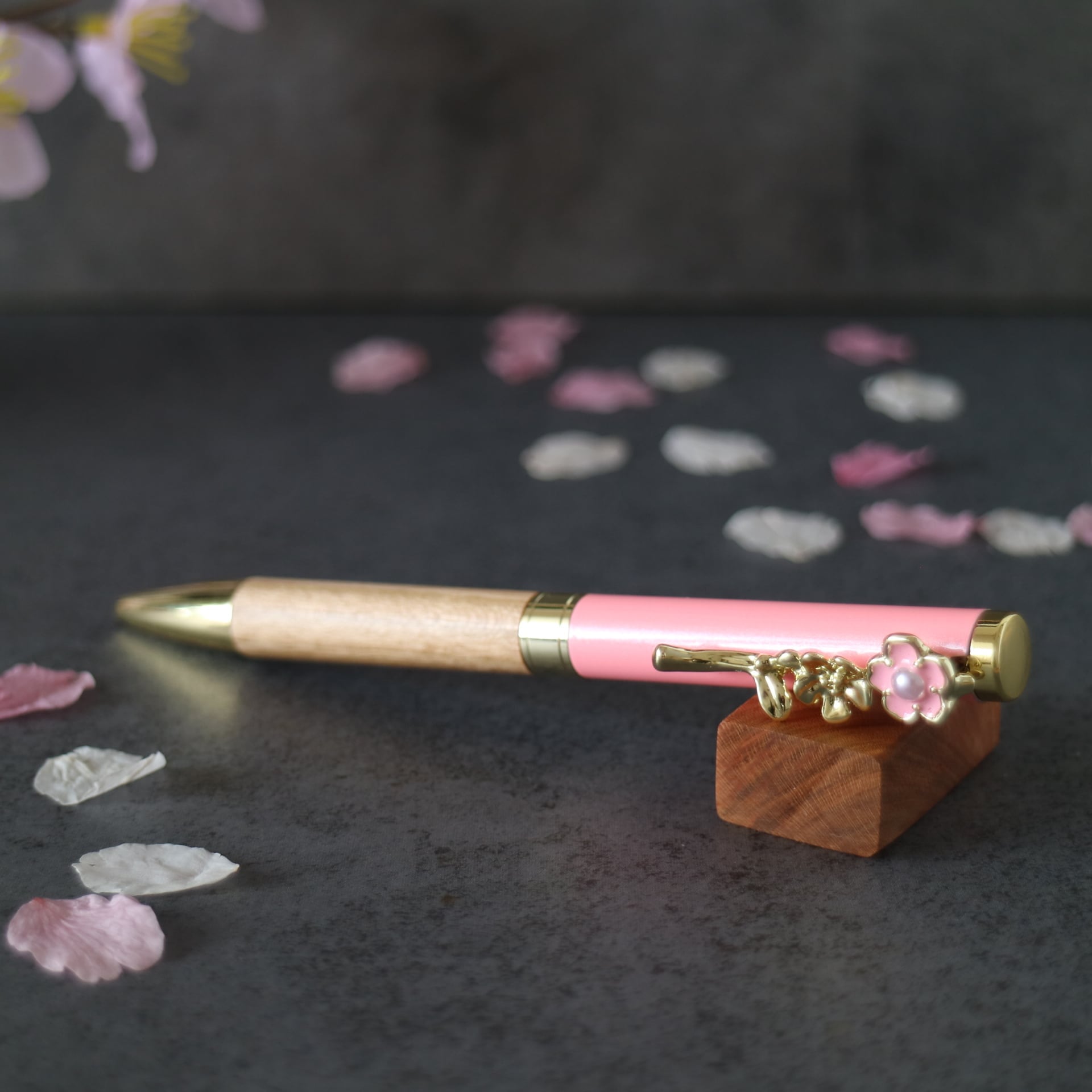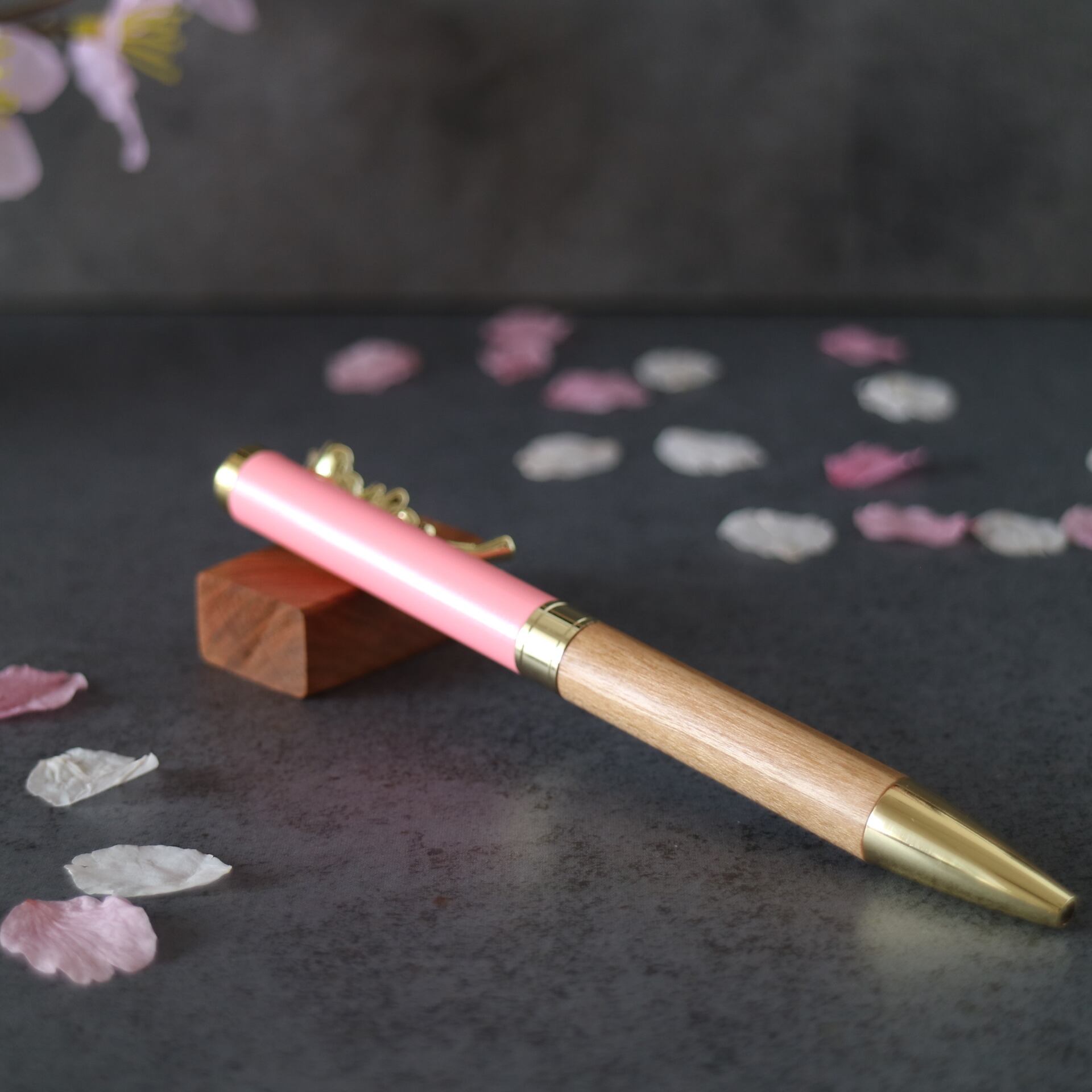 山桜はバラ科桜属の広葉樹です。肌目は緻密で強度や粘りも優れている木材です。色の濃淡がはっきりしていて磨けば光沢が出ます。時間が経つにつれて飴色に変化していき、上品な雰囲気を醸し出してくれます。システム手帳マイクロ5にちょうど良いミニサイズで、文字を書くのが楽しくなり、長く愛用できる一本となるよう心掛けて作りました。