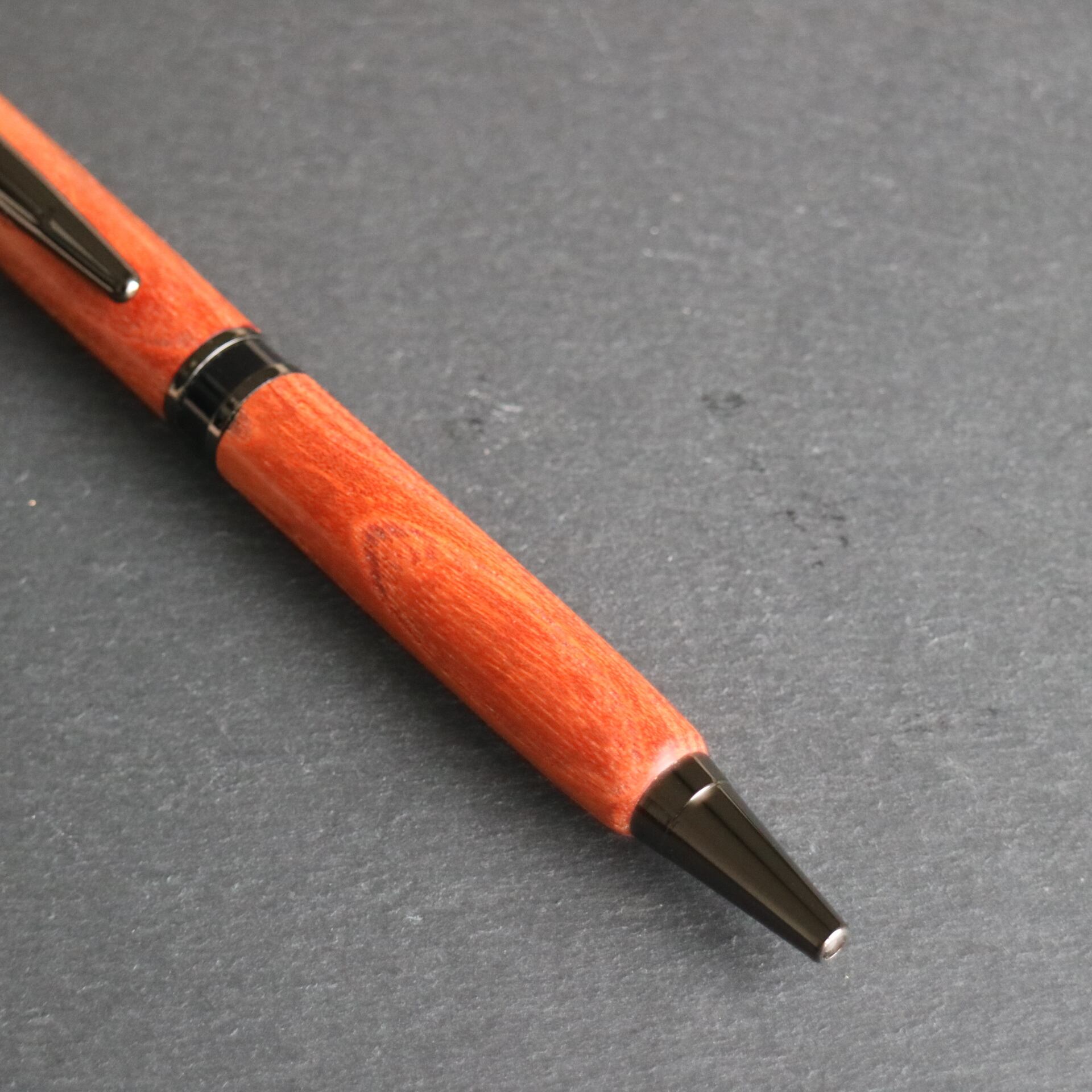 このチャンチンの木を使用したペンは、しっかりとした重量感があり、手に馴染む心地よいバランスを感じられます。適度な重みが筆記を安定させ、じっくりと書く時間を楽しませてくれる一本です。