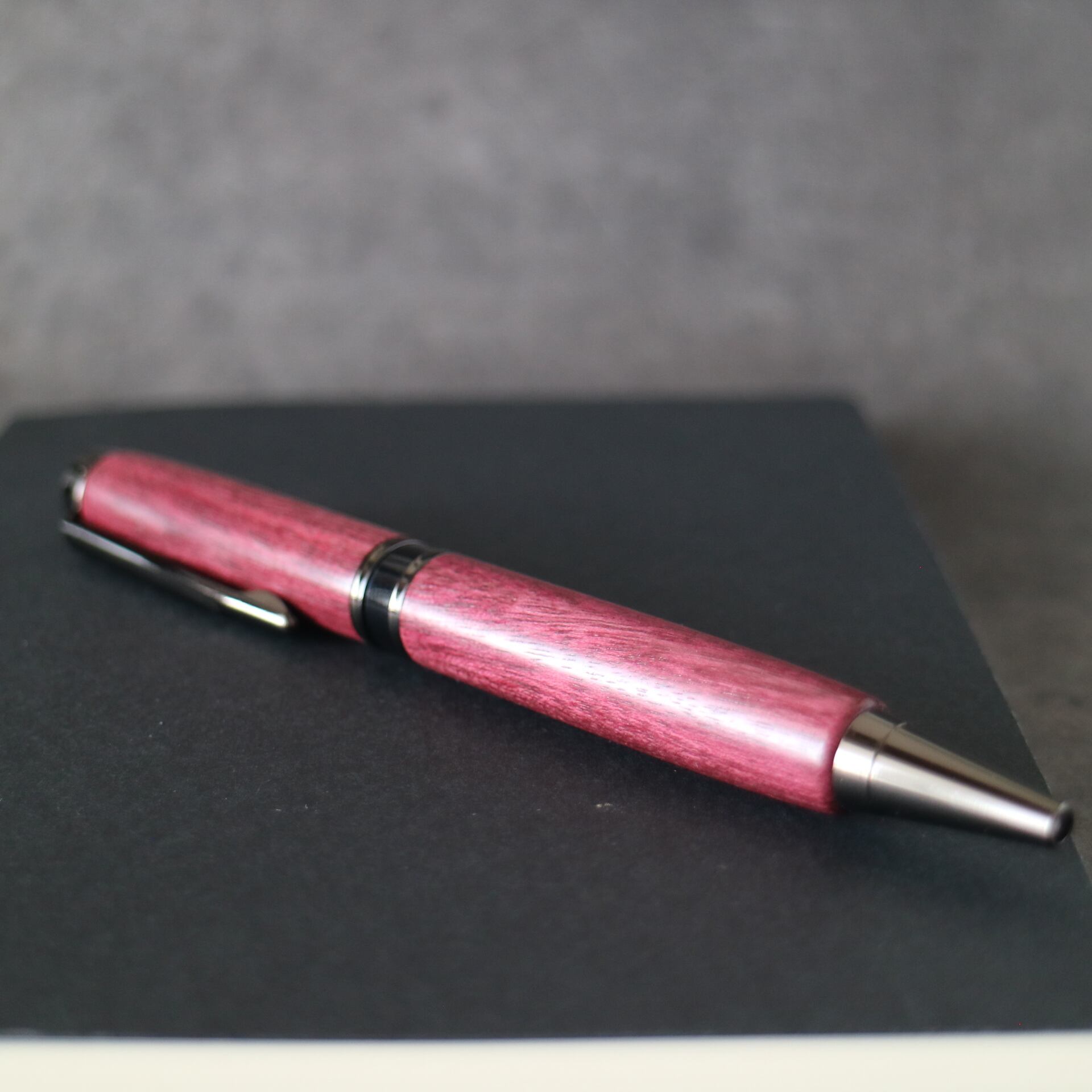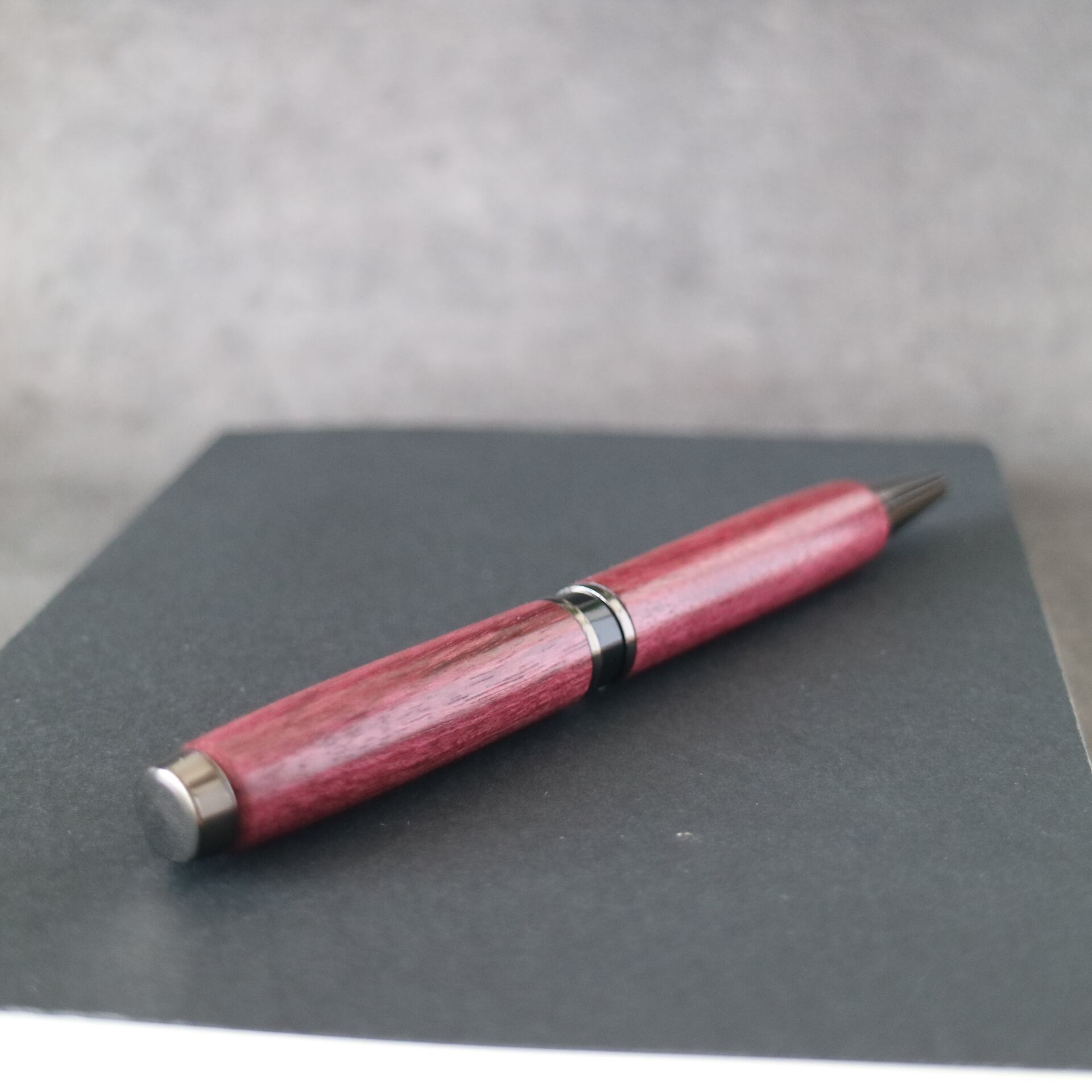 パープルハートは、メキシコやブラジルなどの熱帯地域に自生するマメ科の広葉樹で、その鮮やかな紫色が特徴です。文字を書くたびに楽しさを感じ、長く愛用していただけるよう、心を込めて制作しました。