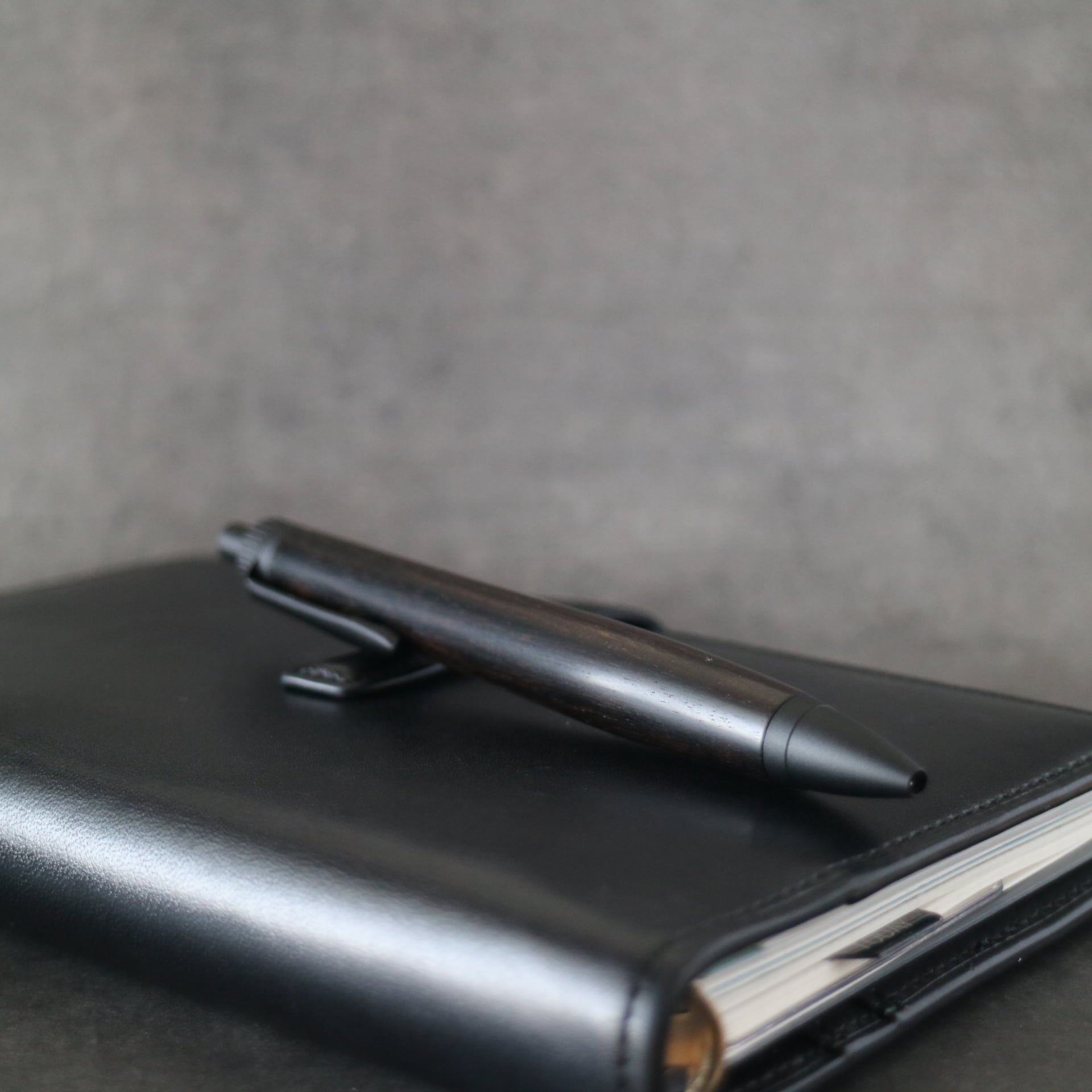 この木軸ペンには、楽器や仏具などにも使われる高級素材「黒檀(こくたん)」を贅沢に使用しています。