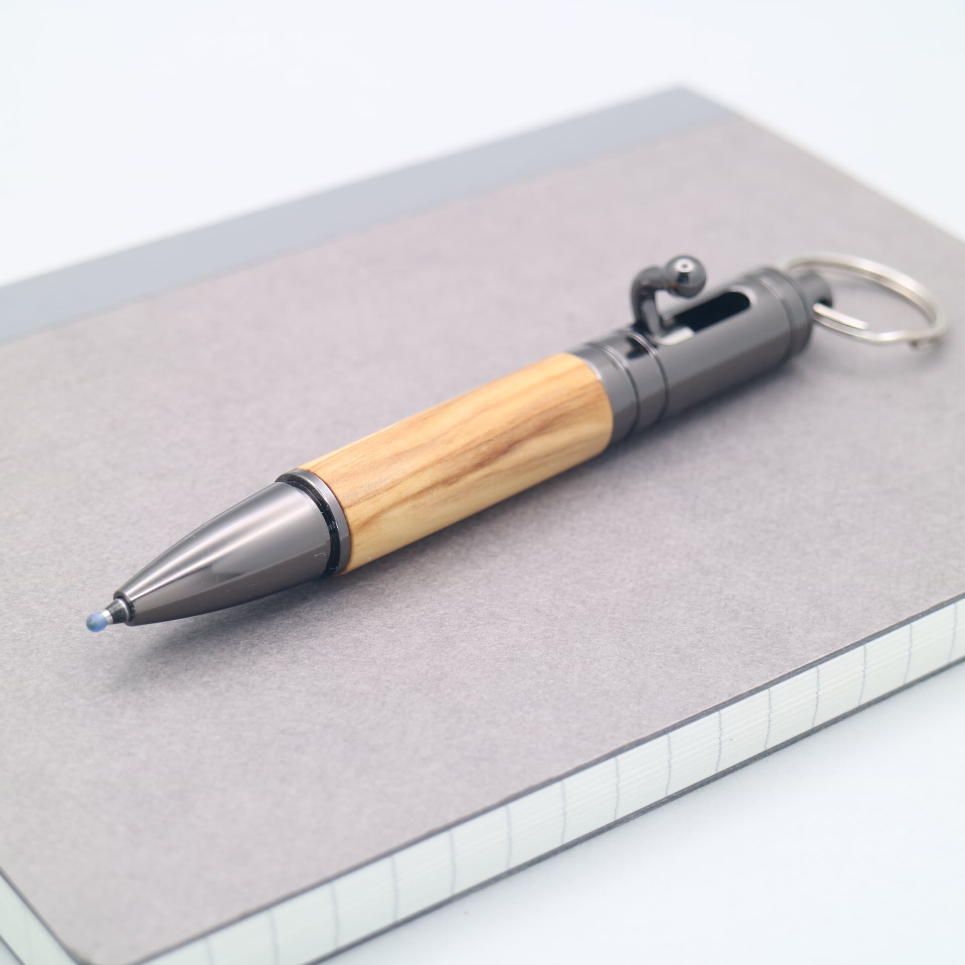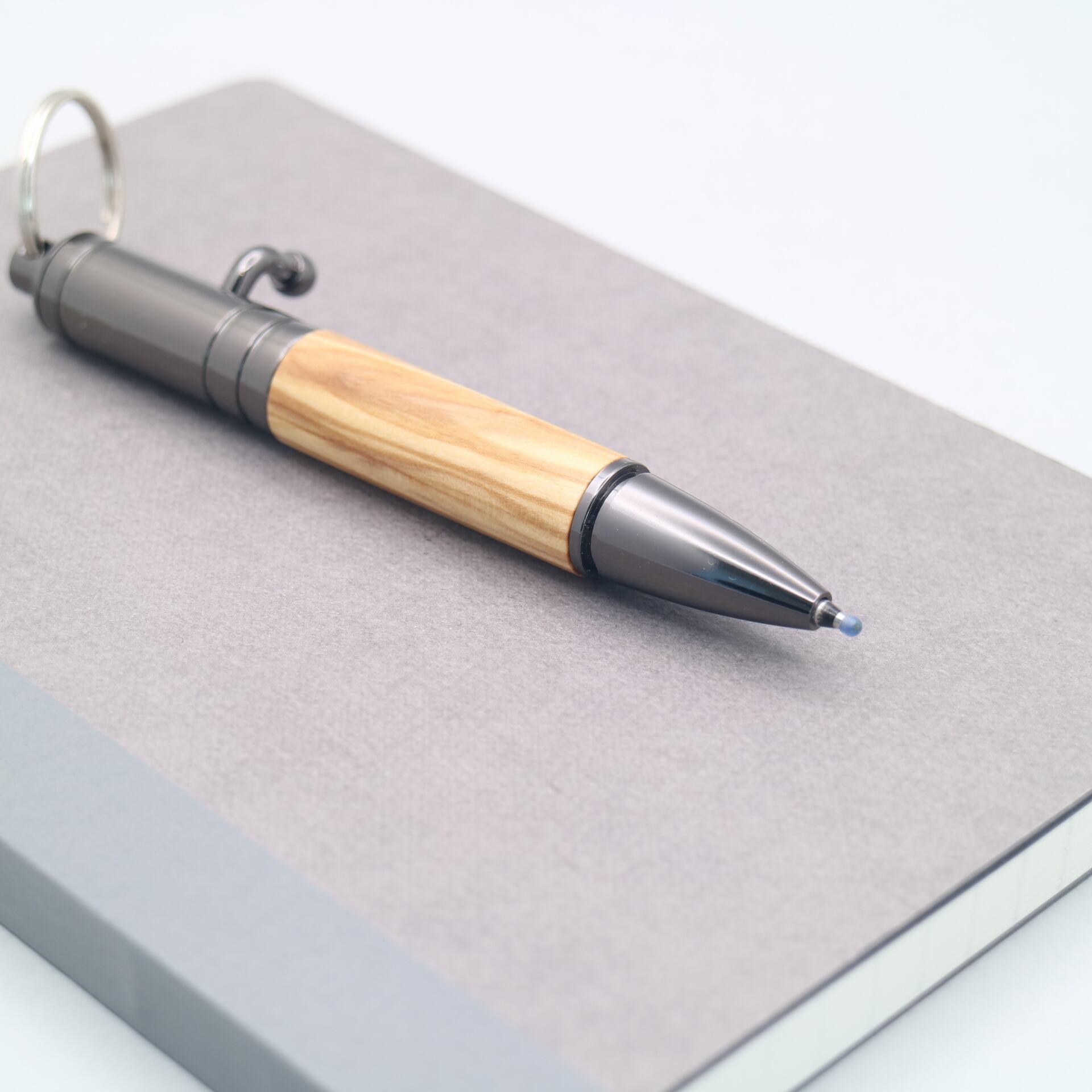 小豆島産オリーブ キーホルダー型木軸ミニボールペン〈ボルトアクション〉