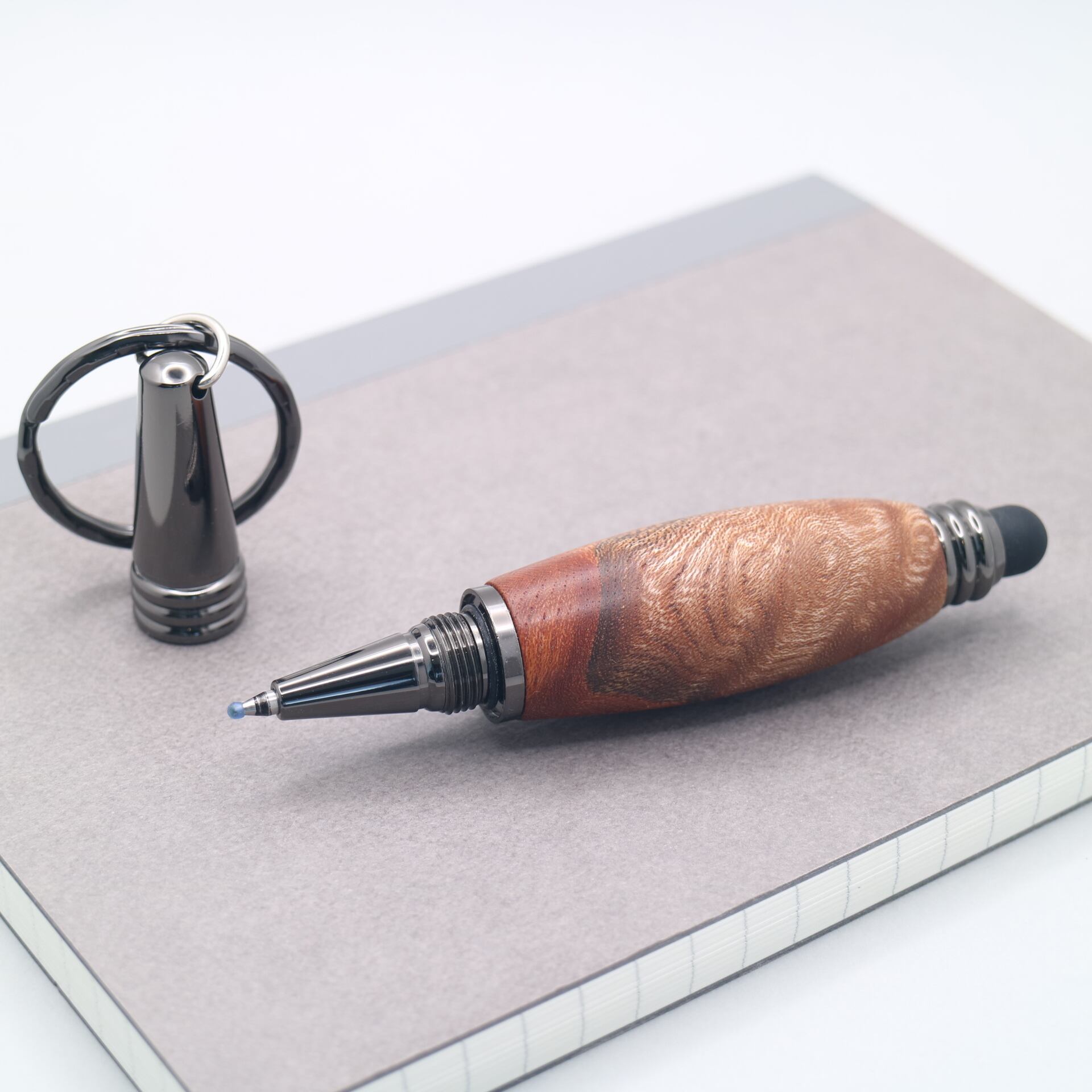 キャップ式を採用し、鍵やバッグにさりげなく取り付けられます。必要な時にすぐ使える便利さと、天然木ならではの温もりを兼ね備えた一本。日常に溶け込む 小さな工芸品 として、いつでもどこでも特別な筆記体験を。