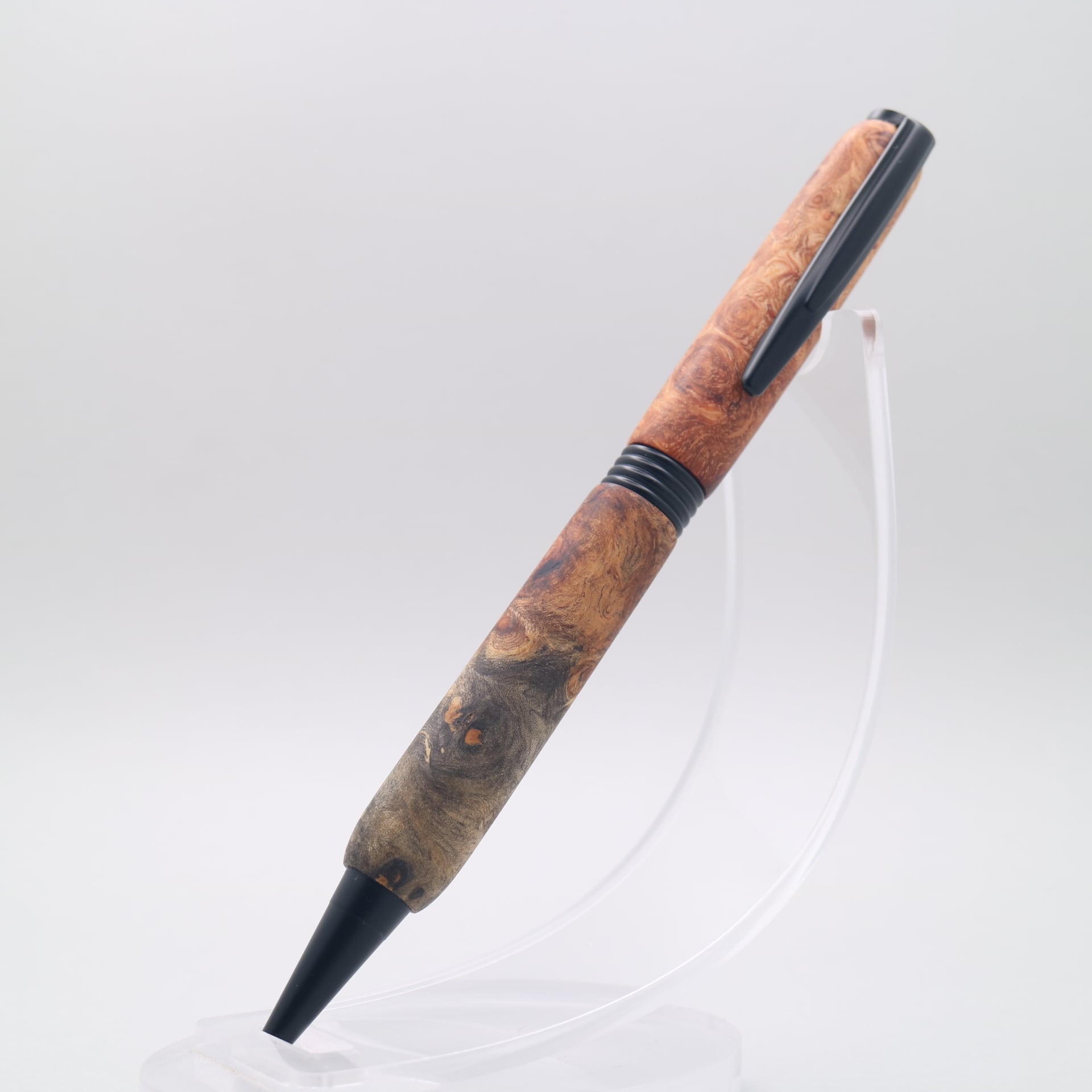 花梨瘤 木軸ボールペン|マットブラック ツイスト式 クロスタイプ 250914