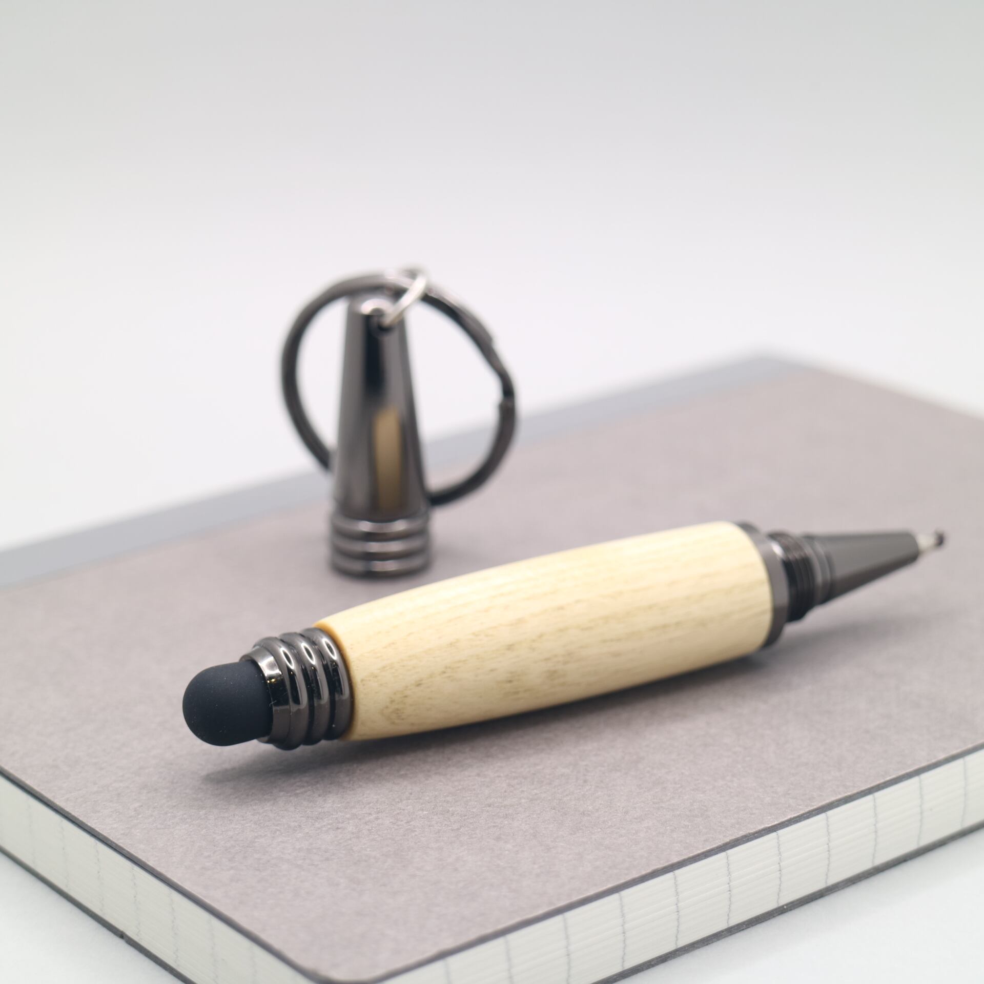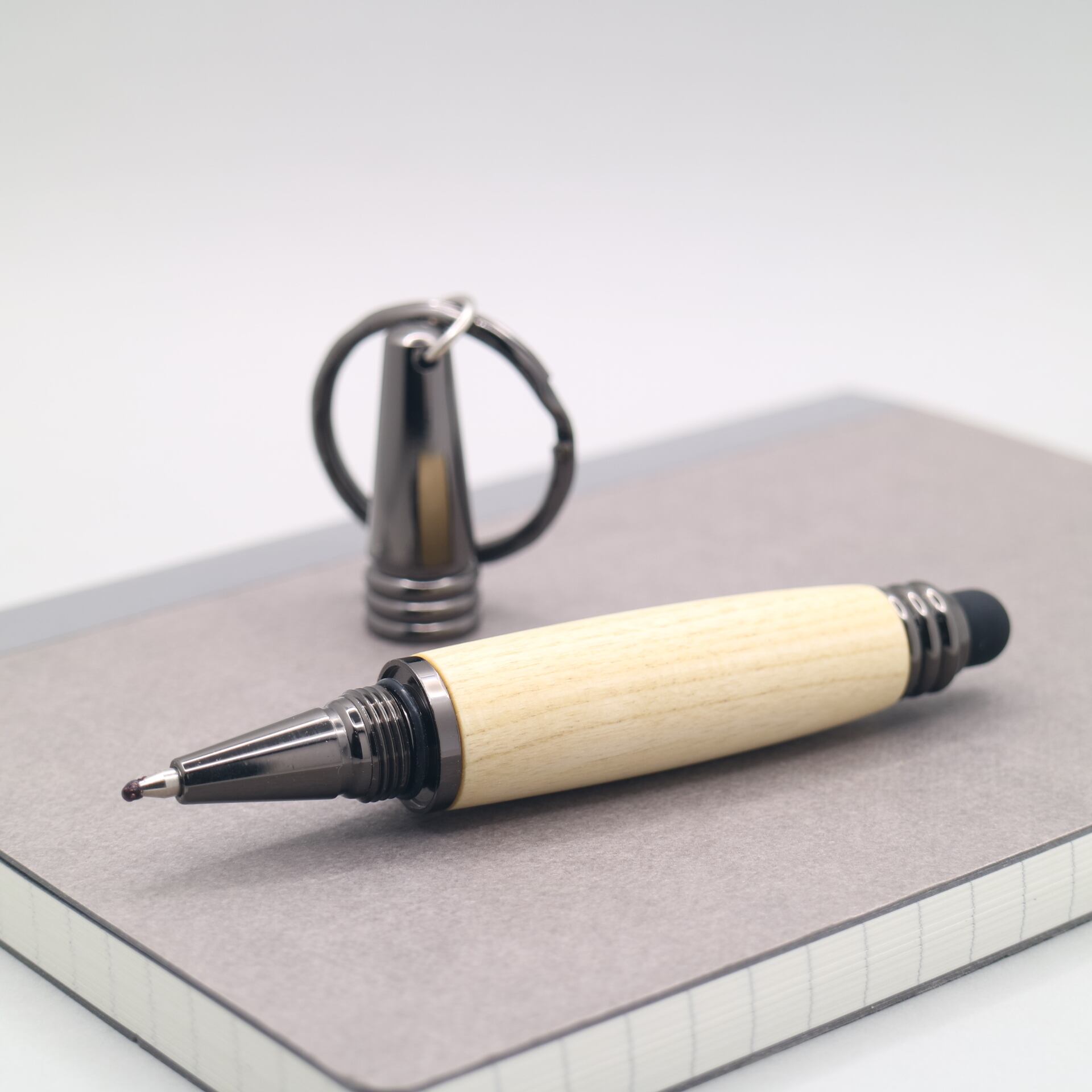 キャップ式を採用し、鍵やバッグにさりげなく取り付けられます。必要な時にすぐ使える便利さと、天然木ならではの温もりを兼ね備えた一本。日常に溶け込む小さな工芸品として、いつでもどこでも特別な筆記体験を。