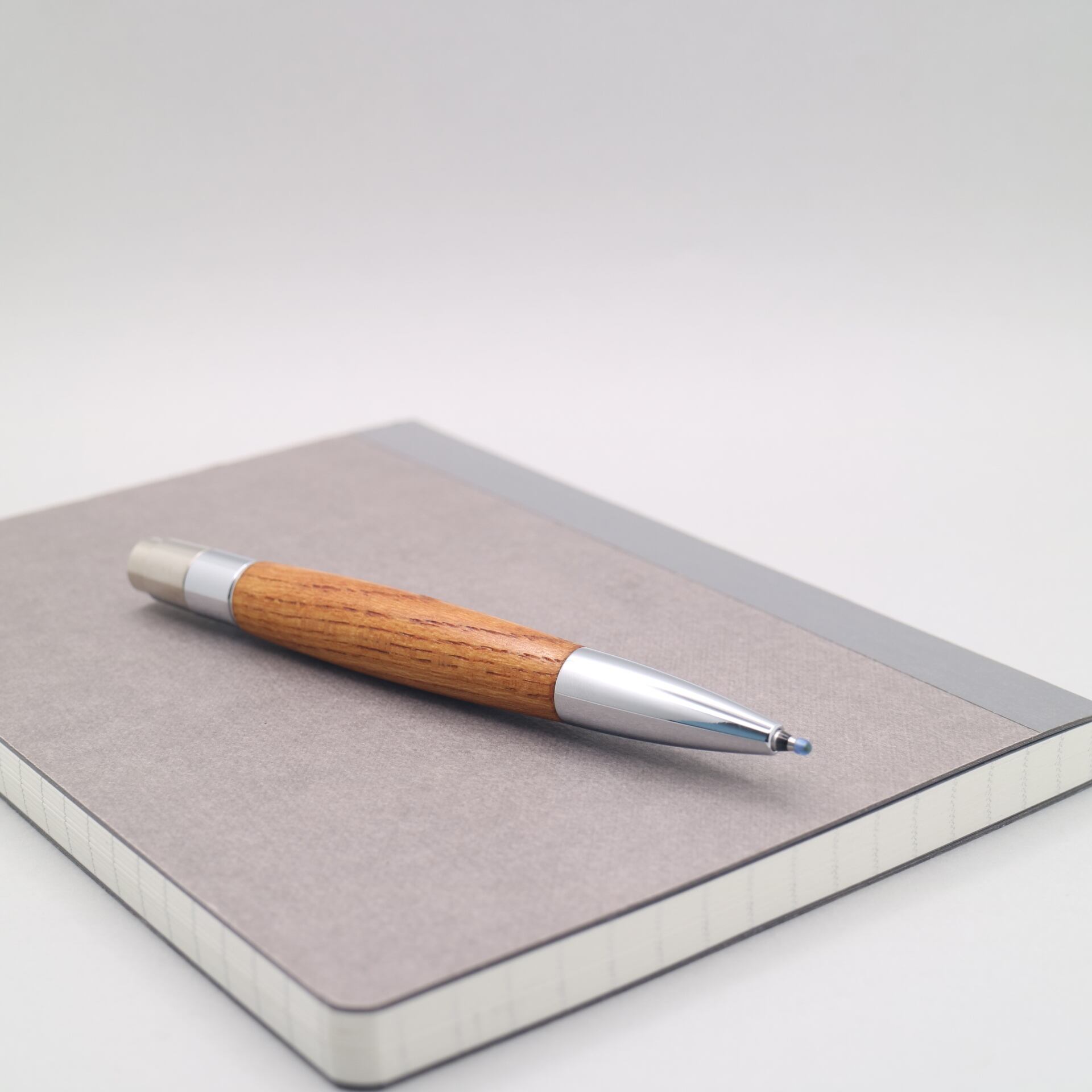 日本の銘木・ケヤキを削り出し、力強く美しい木目をそのまま活かしました。手のひらで木の存在感を感じながら、書くたびに癒しをもたらします。
