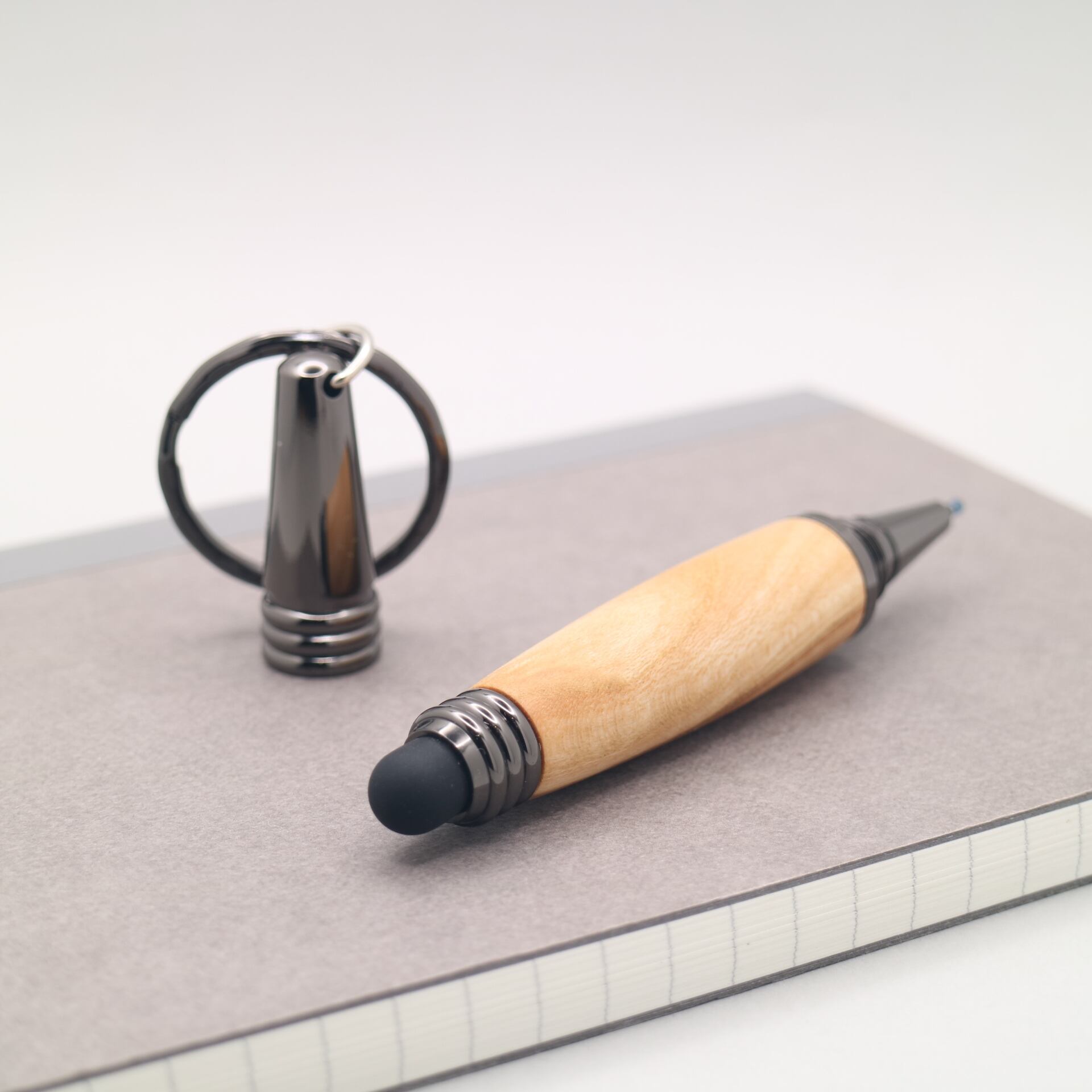 キャップ式を採用し、鍵やバッグにさりげなく取り付けられます。必要な時にすぐ使える便利さと、天然木ならではの温もりを兼ね備えた一本。日常に溶け込む 小さな工芸品 として、いつでもどこでも特別な筆記体験を。