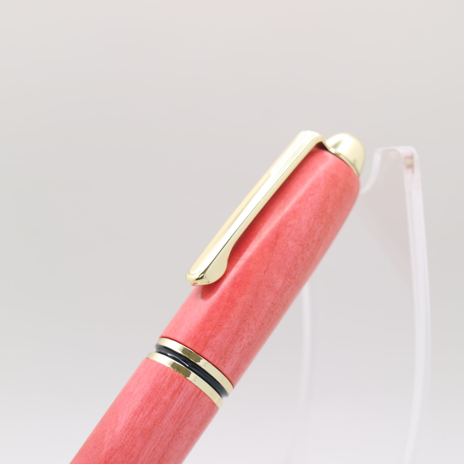 アフリカ原産のピンクアイボリーは、“世界三大銘木”にも数えられる貴重な木材。艶やかで鮮やかなピンクから赤みを帯びた色合いが特徴で、その美しさは「神聖な木」として王族のみに使われてきた歴史もあります。硬質で緻密な木肌は滑らかで、手にした瞬間に特別感を感じさせます。