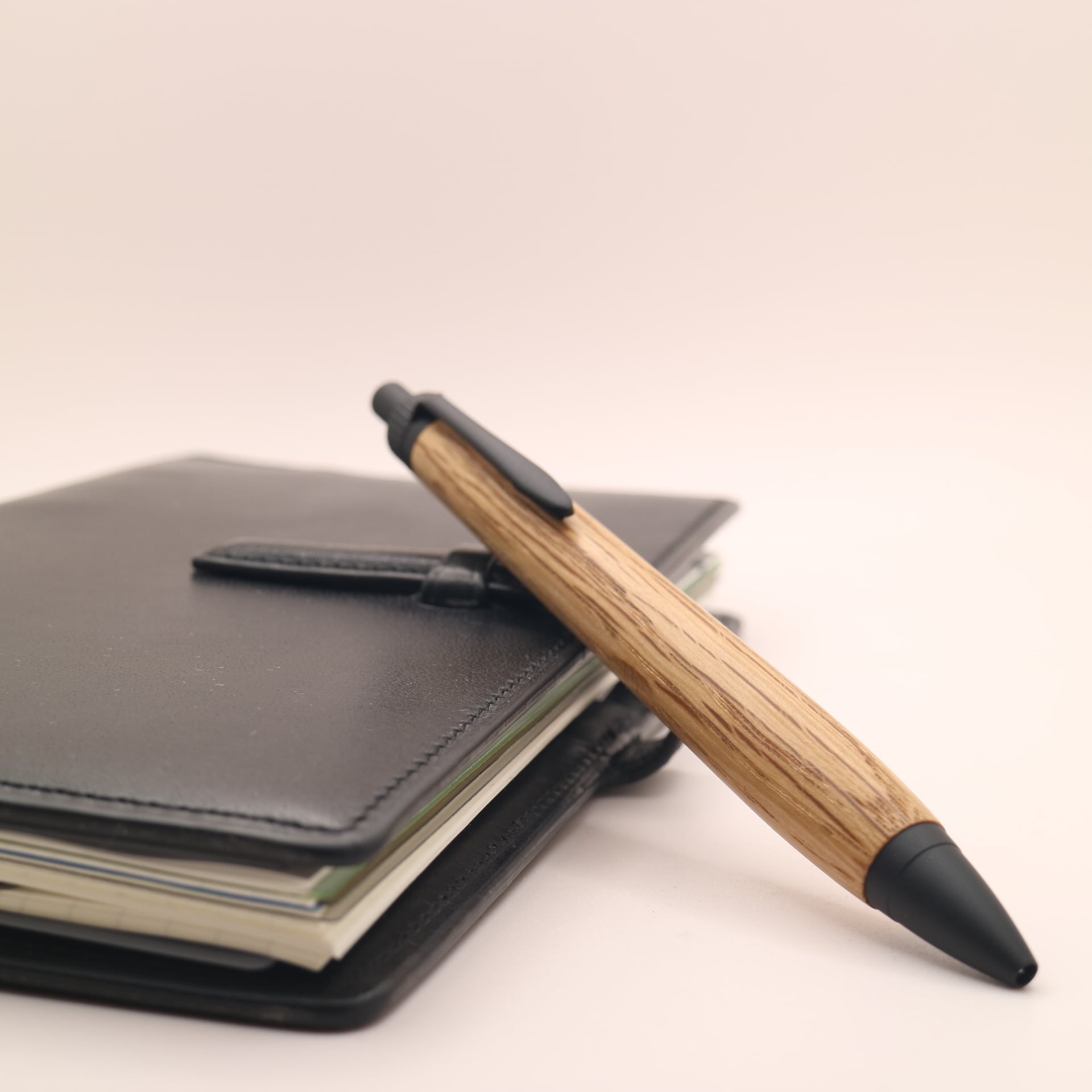 ウィスキー樽(ジャックダニエル)オーク × マットブラック|木の質感を楽しむ木軸ペン|ボールペン or シャーペン 251225