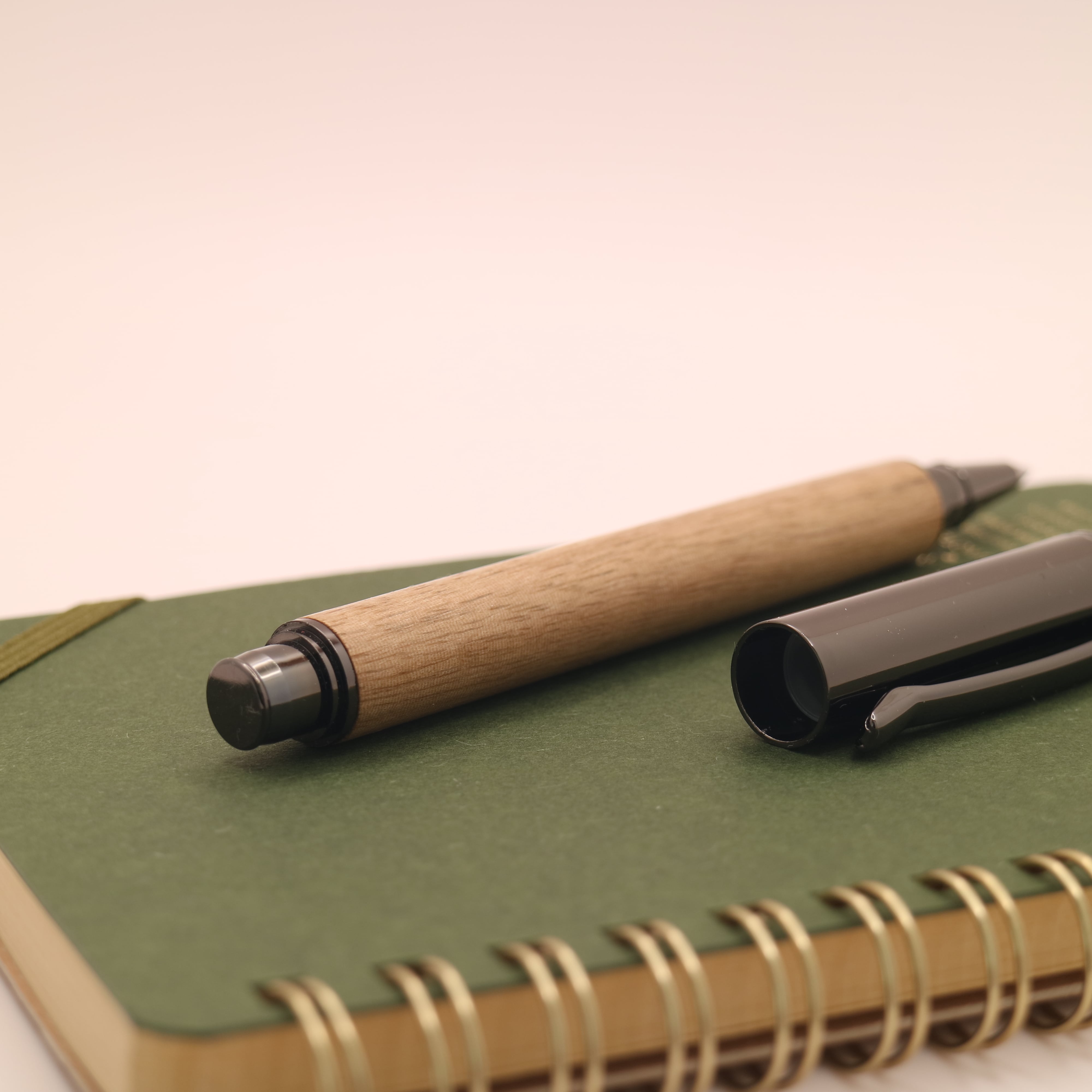 蓮台寺柿ならではのなめらかな木肌と、手の中で感じる確かな密度感は、ゆっくりと文字を書く時間や思考を整理するメモ、日記など、落ち着いて向き合う「書く」ひとときに最適です。静寂の中で文字を綴りたい方に寄り添います。