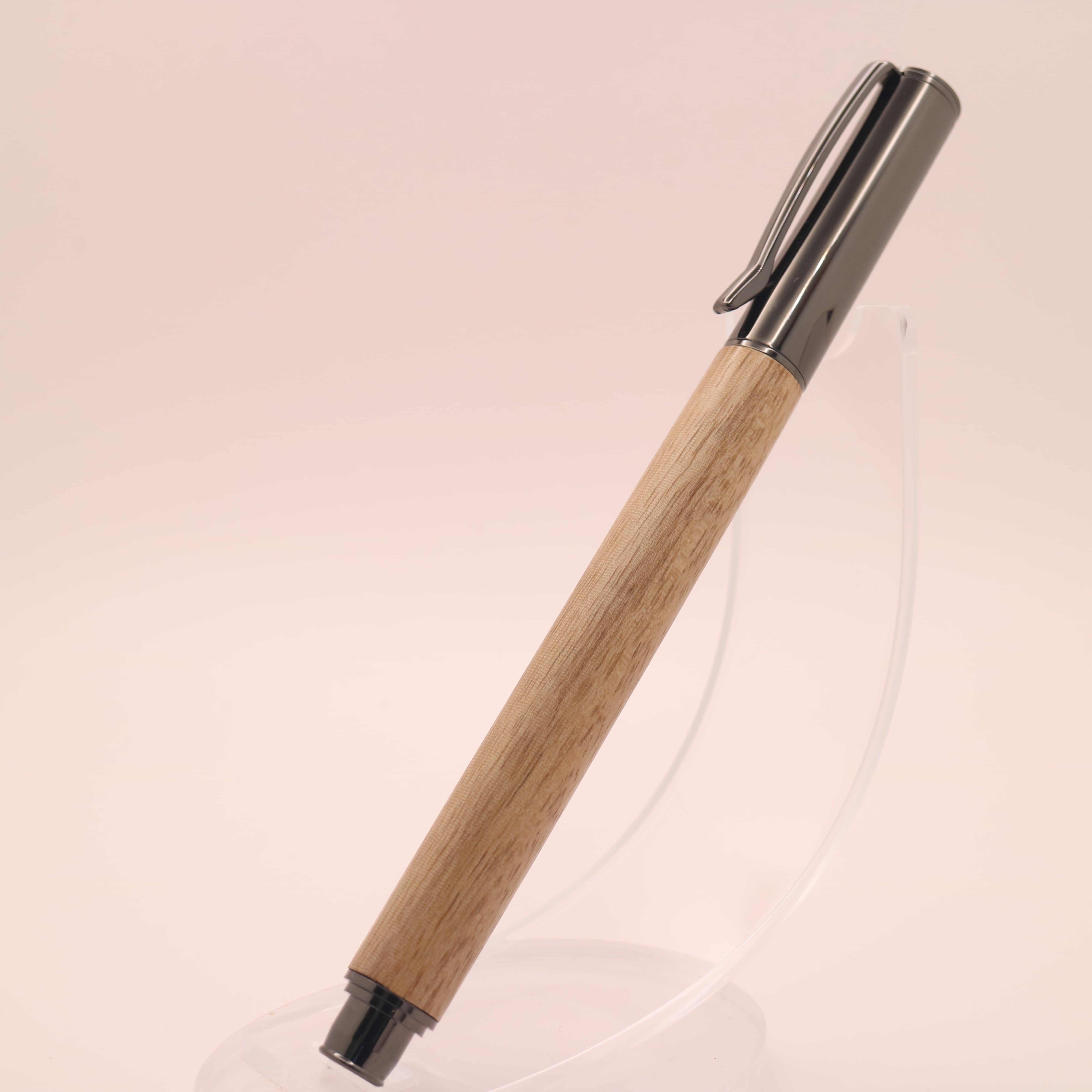 **伊勢市指定天然記念物「蓮台寺柿」**の木材を使用した、希少で特別な木軸ペンです。蓮台寺柿は、伊勢市勢田町で約300年もの間大切に栽培されてきた古い柿の品種で、病気や害虫に弱い性質から品種保存の目的で天然記念物に指定されています。地域と歴史に寄り添う素材を活かし、丁寧に仕立てました。