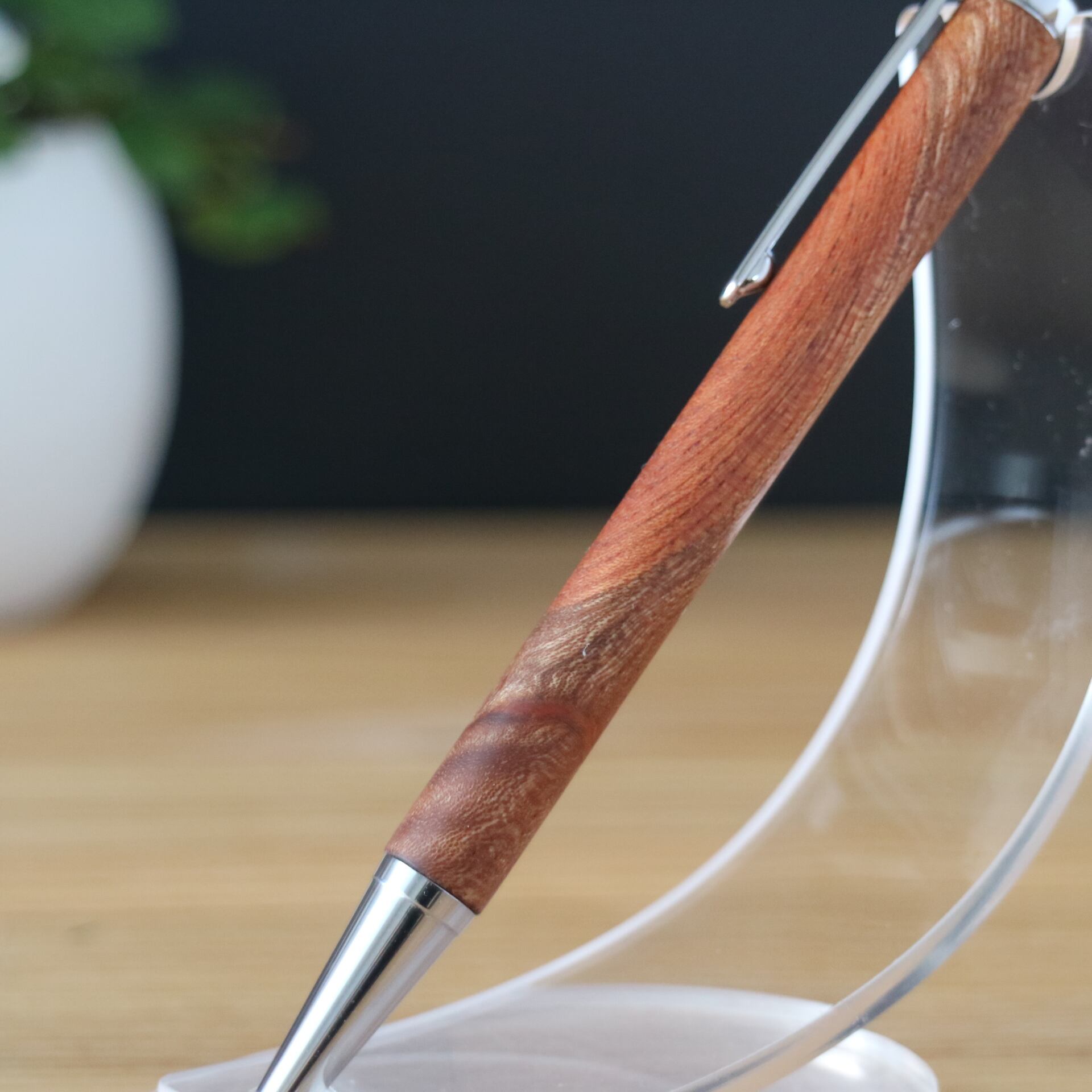 自然素材の独特な美しさを堪能できる木軸ペンは、持つだけで安心感があり、書く喜びを再認識させてくれます。杢のデザインはどれも唯一無二でオリジナリティ溢れます。大切な方へのプレゼントとして、男女問わず、中学生・高校生の入学や卒業祝い、結婚記念日のギフトに最適です。お手紙や日記の執筆、重要な書類へのサインにぜひお使いください。