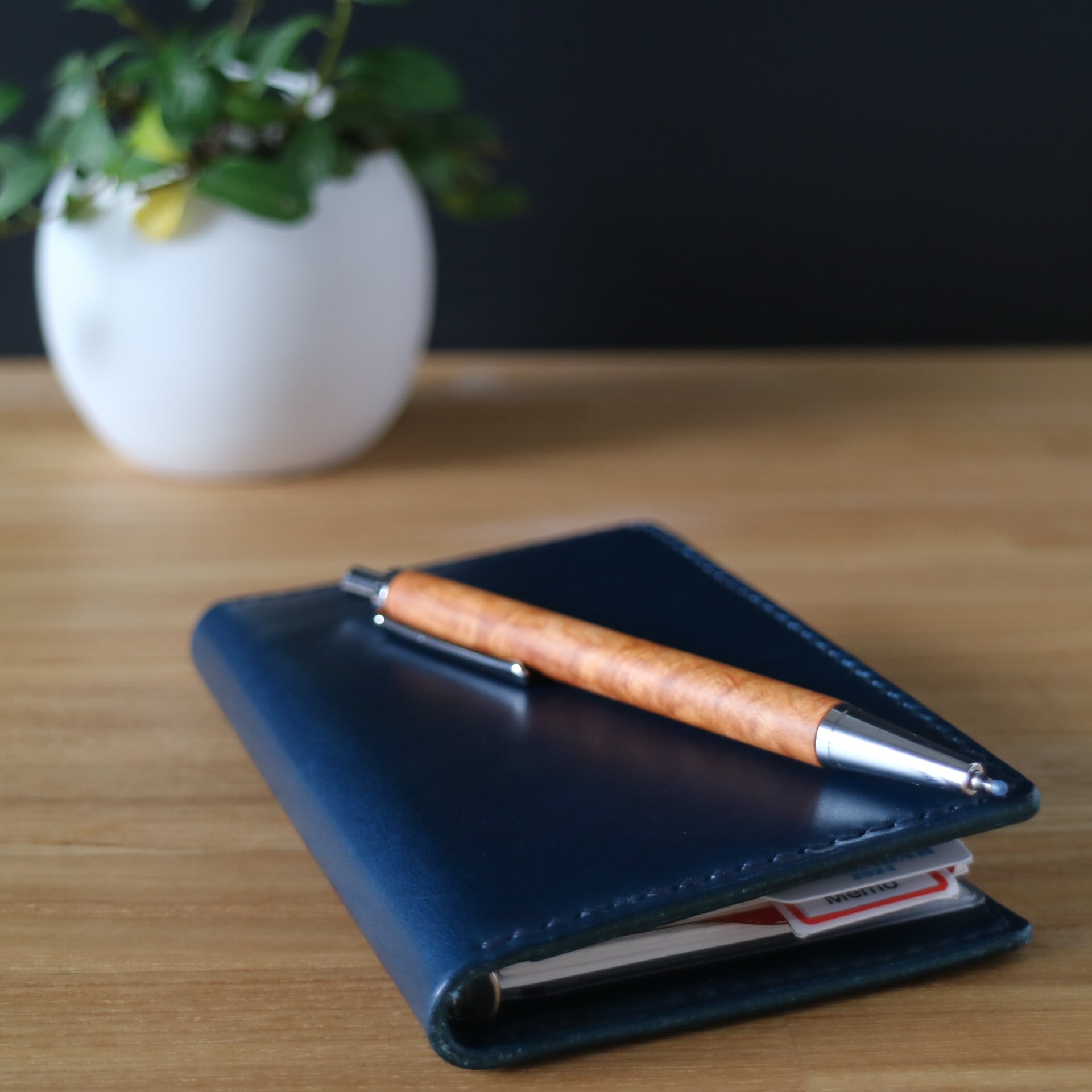 山桜はバラ科桜属の広葉樹です。肌目は緻密で強度や粘りも優れている木材です。色の濃淡がはっきりしていて磨けば光沢が出ます。時間が経つにつれて飴色に変化していき、上品な雰囲気を醸し出してくれます。システム手帳マイクロ5にちょうど良いミニサイズで、文字を書くのが楽しくなり、長く愛用できる一本となるよう心掛けて作りました。