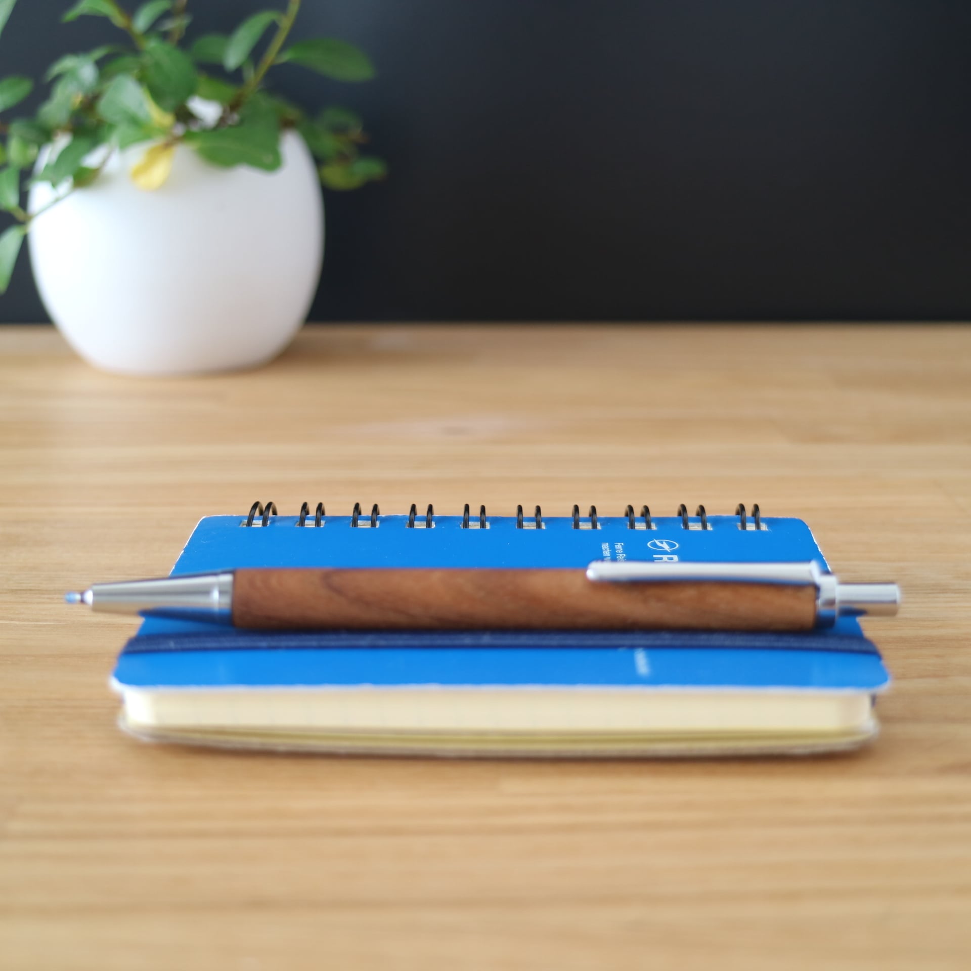 エンジュは、マメ科の広葉樹です。「延寿」という漢字があてられ、病魔を払い寿命を延ばす縁起の良い樹として古くから親しまれてきました。年輪幅は細かく明瞭で肌目は粗いです。システム手帳マイクロ5にちょうど良いミニサイズで、文字を書くのが楽しくなり、長く愛用できる一本となるよう心掛けて作りました。